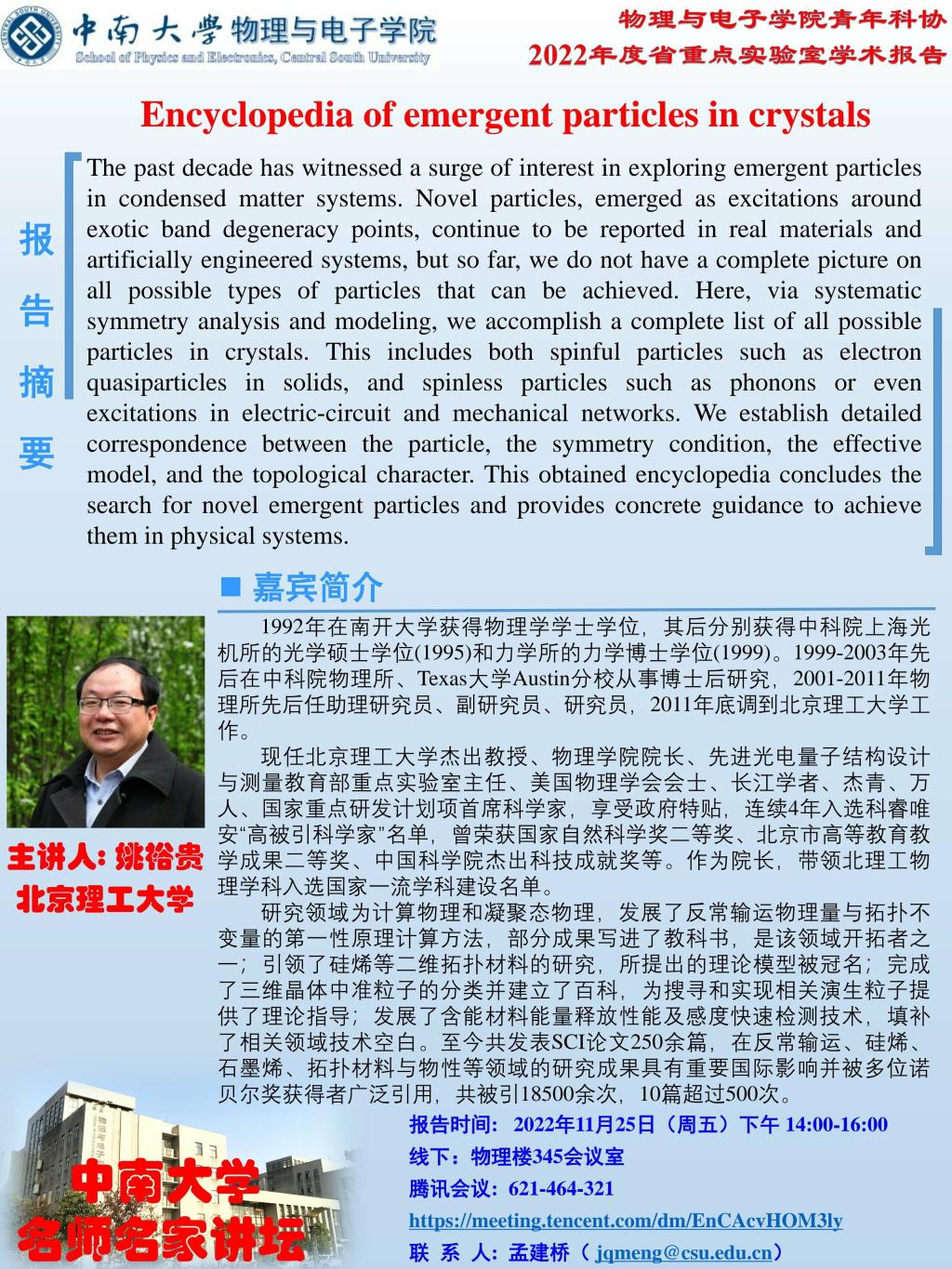 中南大学名师名家学术论坛-Encyclopedia of emergent particles in crystals