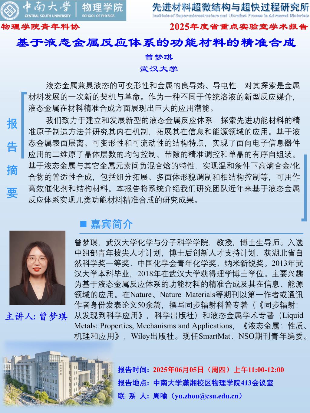 电 话:0731-88836457 传真:0731-88836457地 址:湖南长沙麓山南路中南大学物理学院 邮 编:410012