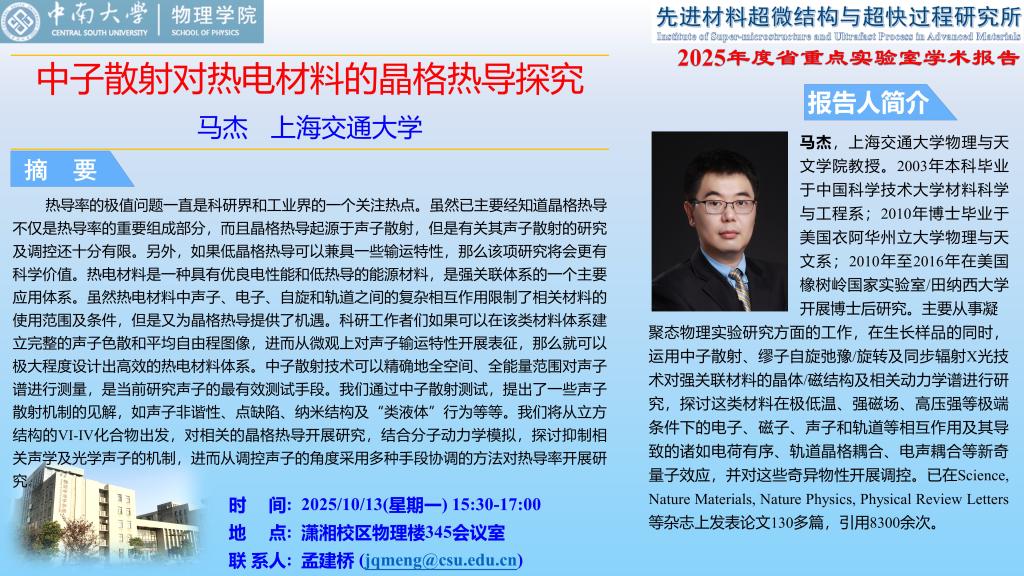 电 话:0731-88836457 传真:0731-88836457地 址:湖南长沙麓山南路中南大学物理学院 邮 编:410012