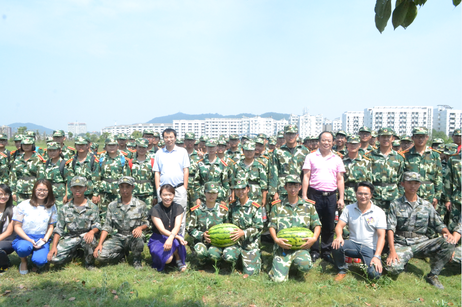9月17日上午,物理与电子学院党委书记许宏武、院长何军、党委副书记谢群及全体辅导员来到训练场看望了正在军训的15级新生,为他们送上西瓜等慰问品。