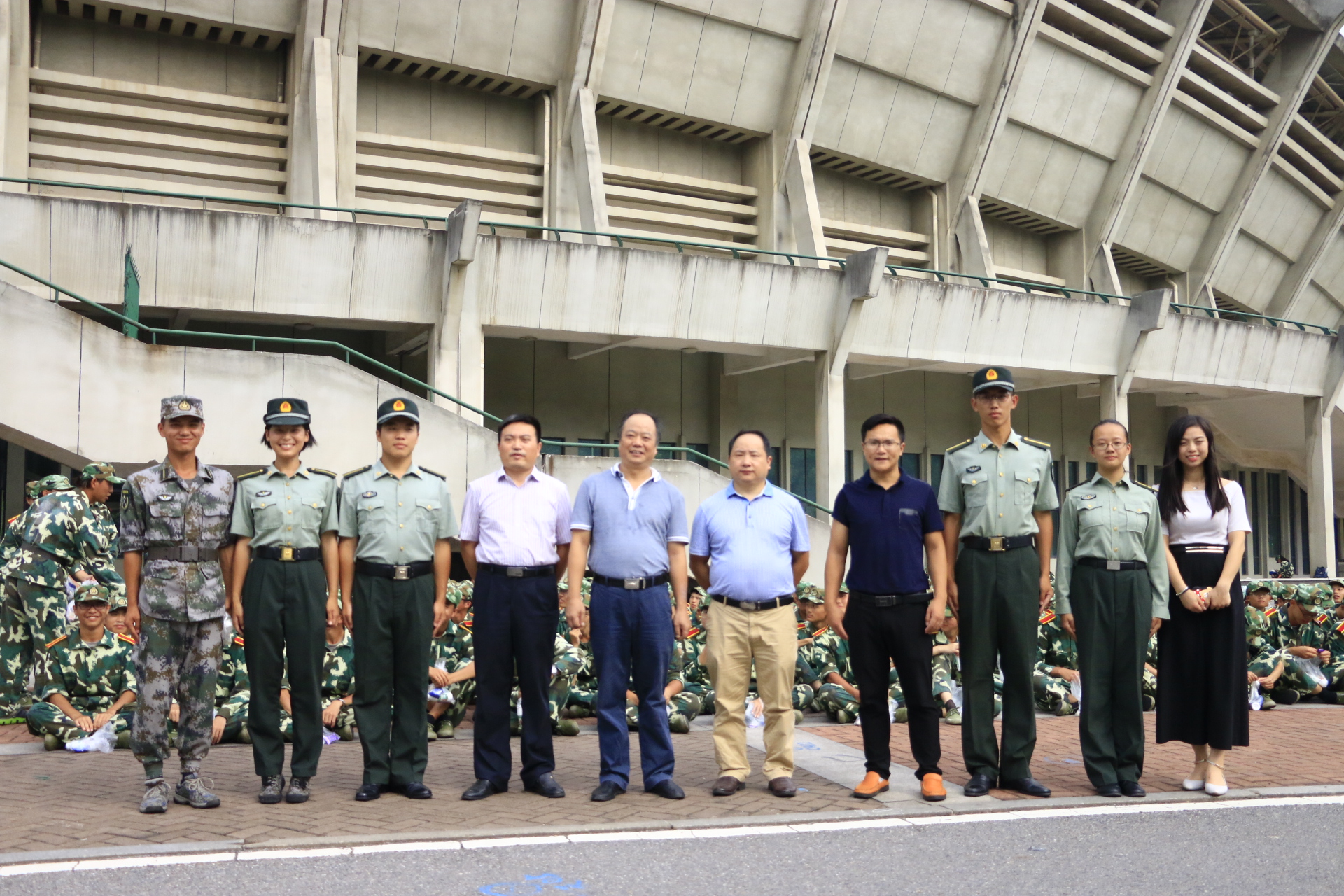 近日,物理与电子学院党委书记许宏武,副院长李长庚、孙克辉与全体辅导员共同看望慰问了一营三连的物理与电子学院17级军训新生,为同学们送上了巧克力和饮品等礼物。