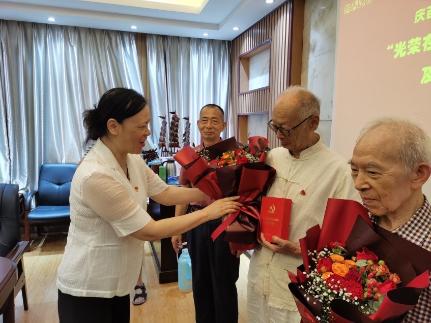 今年是中国共产党100年华诞,为进一步激发广大共产党员爱党、敬党、为党的事业不懈奋斗的热情和干劲,我院举办庆百年华诞,绽历史荣光——“光荣在党50年”纪念章颁授及老党员座谈会,为我院党龄超过50年且政治素质过硬的老党员颁发“光荣在党50年”纪念章,并进行座谈。座谈会上,李登伶书记向大家介绍了8位“光荣在党50年”纪念章的获得者,宣读了他们的党龄时间,最长的党龄为66年。