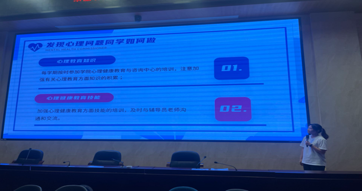 培训开始,物理学院心助会办公室副部长吕佳珂简要概述了心理健康知识,系统讲解了心理委员日常工作要领。接着,吕佳珂通过具体案例,引导心理委员们学会识别同学心理发生变化的信号,掌握与有心理困扰的同学进行有效沟通的方法。最后,吕佳珂同学强调突出了心理委员向辅导员和专干老师报告异常情况的重要性,发挥心理委员作为班级互助队队长的使命担当。