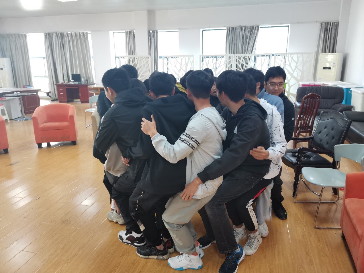 随后,开始了第一个环节,大家围成了一个圈,进行坐长城游戏。气氛逐渐活跃起来,随后紧接着的是数钱游戏,同学们都围成并且随着龙老师的故事进行而走着,随后当龙老师报到钱数时,按女生算作一元,男生算作五角来抱团计数,抱团之外的同学将要接受惩罚。游戏总共进行了三轮,依次有同学进行了自我介绍、才艺表演以及最有意思的六芒星阵摆拍。