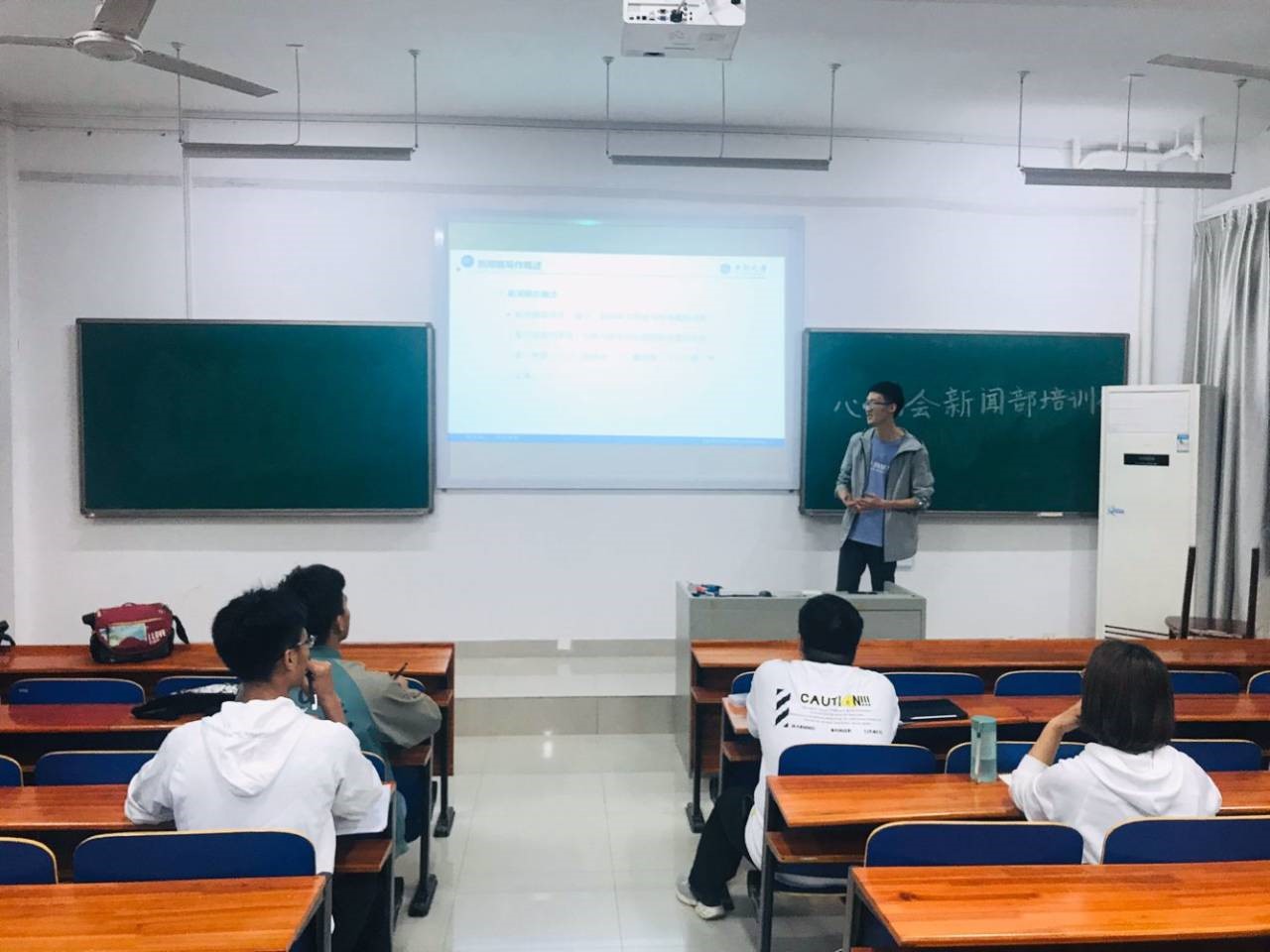 10月22日晚七点,物理与电子学院心助会新闻部在物理楼125活动室展开了第二次培训会,此次培训由物电院新闻中心主任吕治东担任主讲,心助会会长任祥毓以及新闻部全体干事参加了此次培训。
