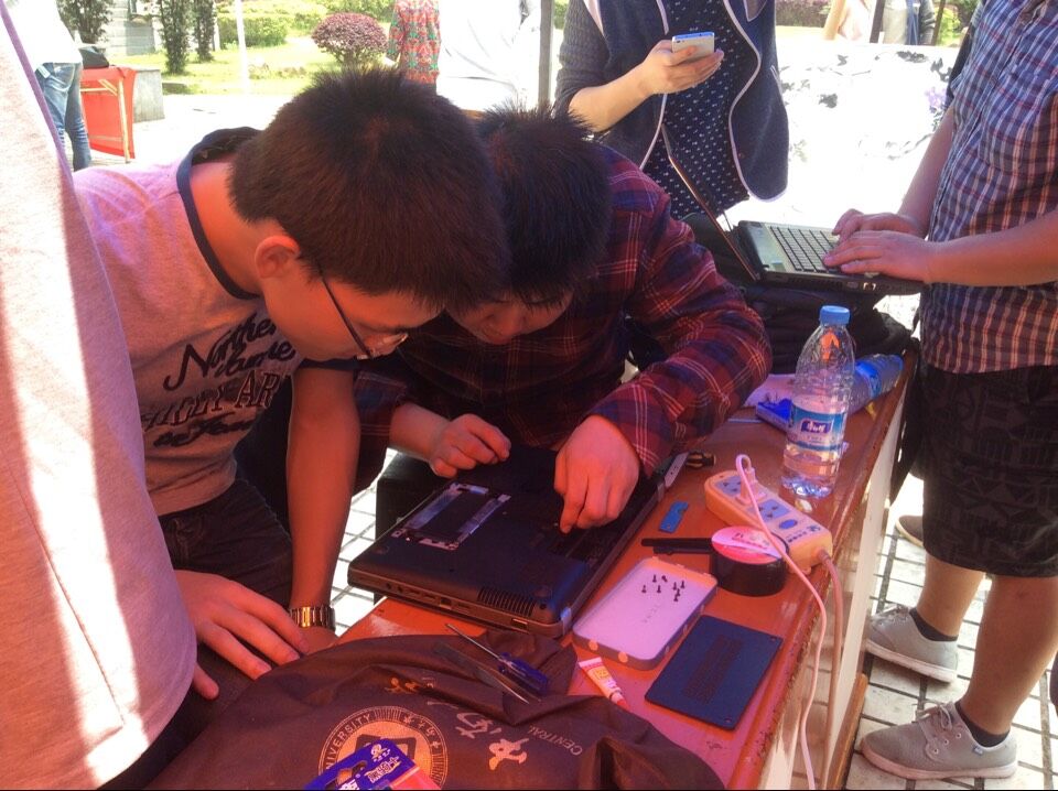 活动中,大家分工明确,前台负责登记的同学,将老师和同学们送来维修的小家电进行分类管理,不同的家电交予相应的维修组同学负责,有电脑组、吹风机组、电扇台灯组、耳机音响组以及烹饪工具组。维修过程中,同学们相互学习团结协作,遇到问题复杂的家电,大家共同会诊,发挥各自特长,整个活动井然有序。