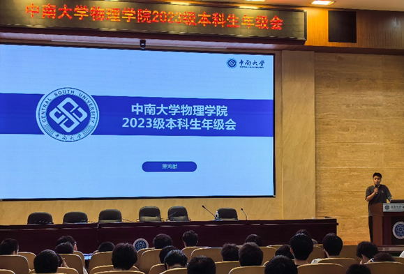 6月26日下午3点,我院在物理楼116报告厅召开2023级本科生年级会,会议由辅导员萧鸿猷老师主讲,物理学院2023级全体本科生参加。