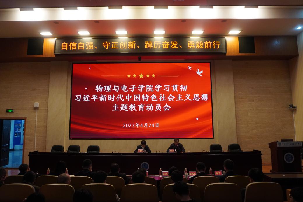 (通讯员 张子睿)4月24日上午,物理与电子学院在物理楼116报告厅召开学习贯彻习近平新时代中国特色社会主义思想主题教育动员会。学校主题教育第四指导组组长、校党委统战部常务副部长刘建华出席会议并讲话,学院...