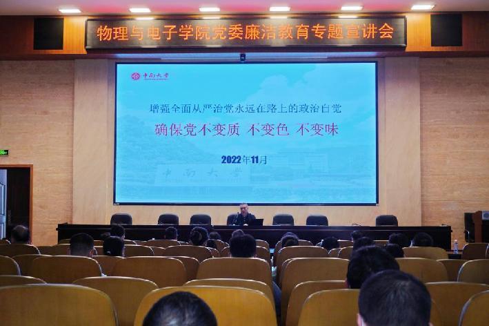 (通讯员 施佳璐)11月10日下午,我院党委廉洁教育专题宣讲会在物理楼116报告厅顺利举行。我校纪委第二纪检监察室主任卜世波受邀主讲《不忘初心,与廉同行》专题报告。会议由学院党委副书记谢群主持,全体学院领...