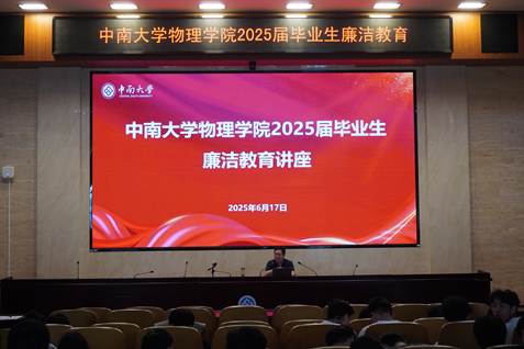 为深入学习贯彻党的二十大精神,将党纪学习教育走深走实,培育毕业生清正廉洁的价值理念,引导他们在步入社会之际廉洁修身、廉洁从业,扣好职业生涯“第一粒扣子”,6月17日下午,物理学院2025届毕业生廉洁教育讲...