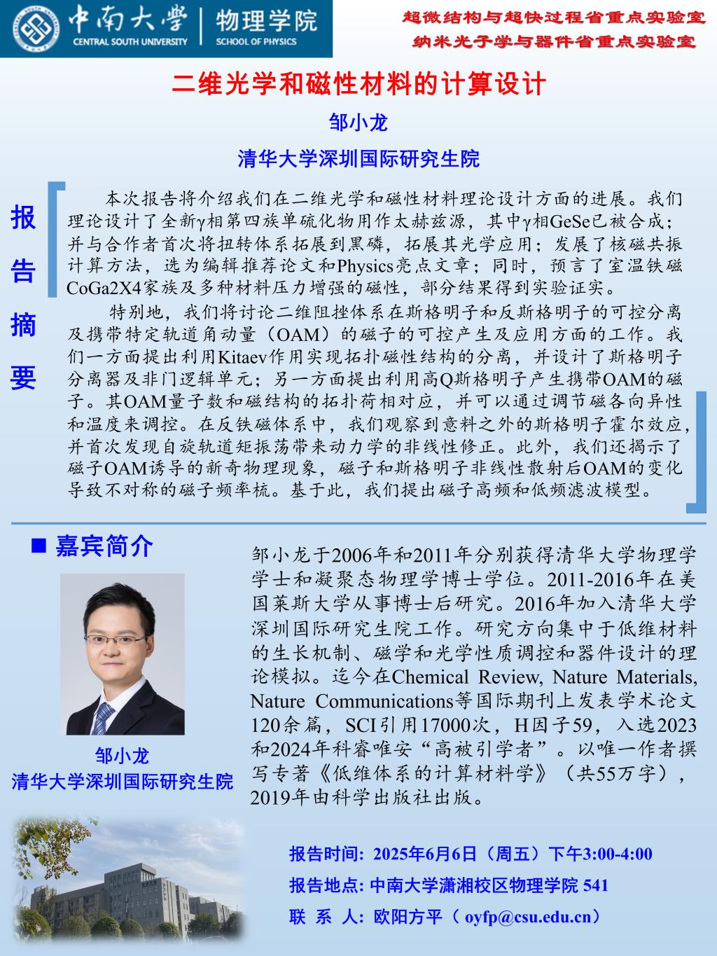 电 话:0731-88836457 传真:0731-88836457地 址:湖南长沙麓山南路中南大学物理学院 邮 编:410012