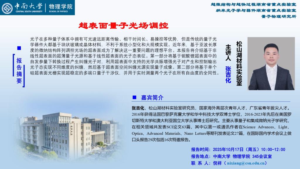 电 话:0731-88836457 传真:0731-88836457地 址:湖南长沙麓山南路中南大学物理学院 邮 编:410012