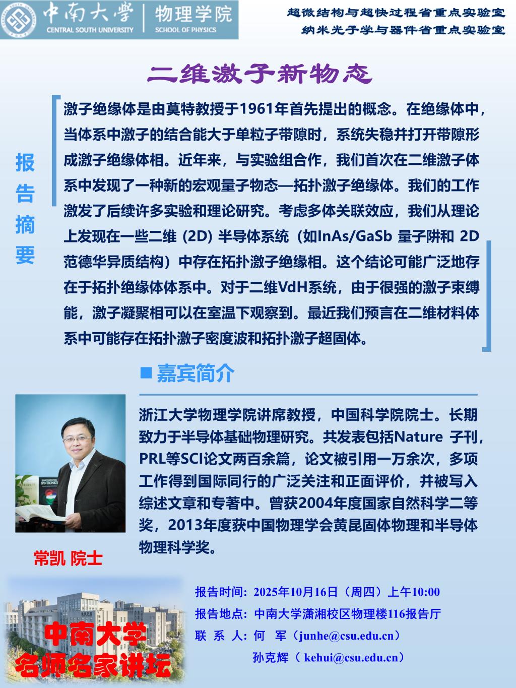电 话:0731-88836457 传真:0731-88836457地 址:湖南长沙麓山南路中南大学物理学院 邮 编:410012