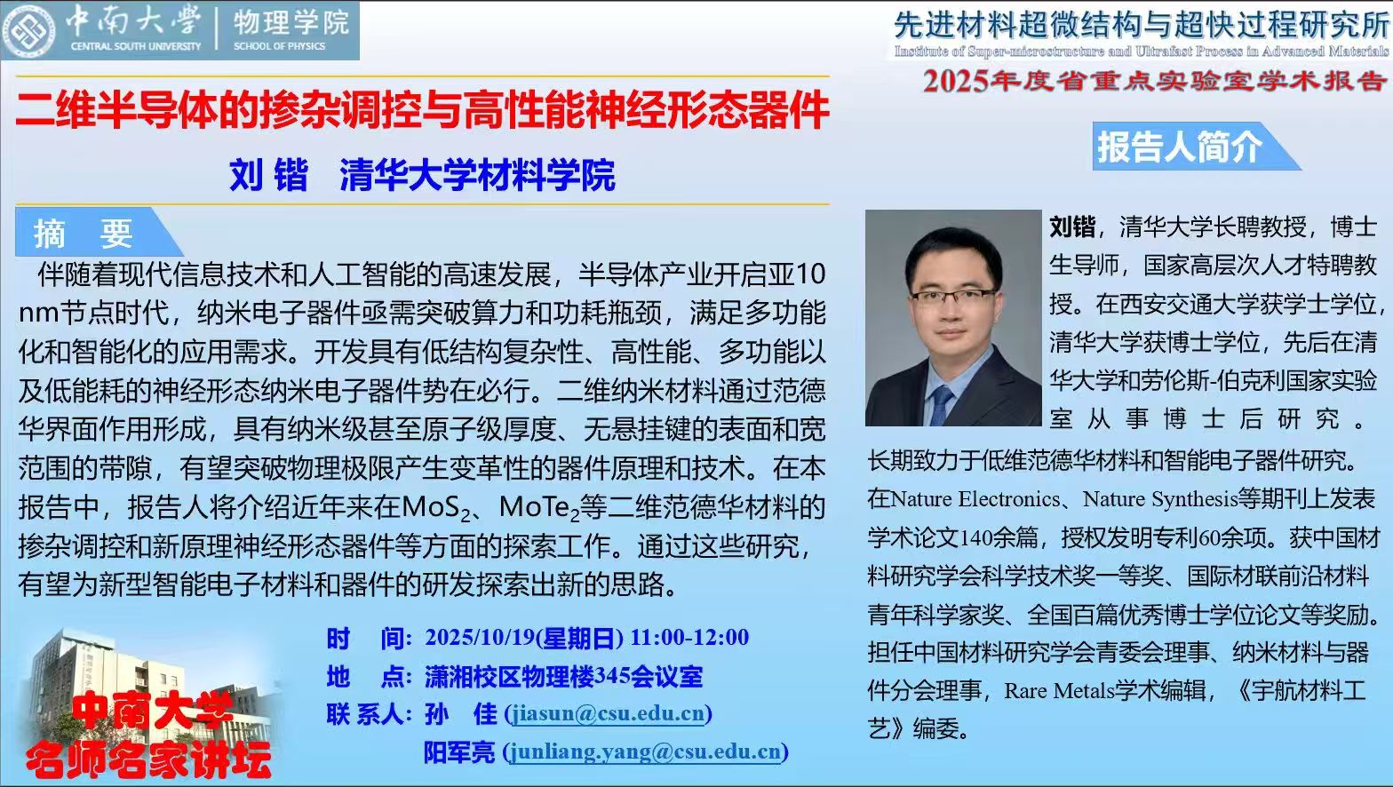 电 话:0731-88836457 传真:0731-88836457地 址:湖南长沙麓山南路中南大学物理学院 邮 编:410012