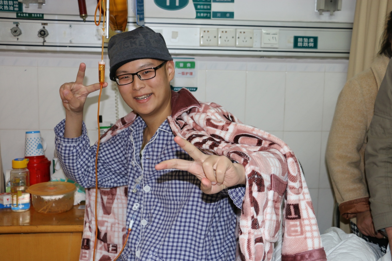 永锋脸上洋溢着幸福的微笑,他说:“我非常幸运能够生活在中南大学这个温暖的大家庭,老师和同学们帮我募集医疗费,还想尽办法帮助我解决住院期间的诸多困难,衷心感谢学校、学院领导,老师和同学们以及社会各界爱心人士对我的关心和资助,我一定克服一切困难,不辜负大家对我的厚爱。”