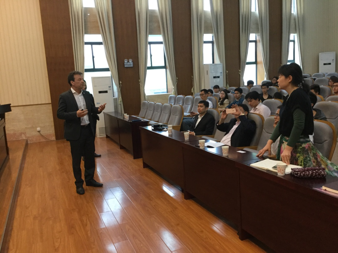 讲座题目为“Epitaxial growth of heterostructuredIII-V semiconductor nanowires on graphene”,即“石墨烯上外延生长III-V半导体纳米线异质结构”。 近年来,III-V族纳米线在纳米电子和纳米光子器件领域的应用潜力被逐步发掘,纳米线异质结构尤其备受世人关注。首先,Helge Weman教授介绍了挪威科技大学和他自己的实验室,包括他建立的CrayoNano AS公司的情况。接着,Weman教授介绍了自己近期在石墨烯上外延生长GaAs、GaN纳米线,并且开发基于AlGaN/graphene复合结构的高效率紫外LED的工作。Weman教授提出了通用的原子模型,可以用来描述在石墨烯上外延生长所有的传统半导体材料。利用透射电子显微镜对石墨烯上外延生长的GaAs、GaN纳米线横截面进行观测与研究,成功地验证了该原子模型。最后,Weman教授与在场师生进行了亲切的交流互动,并耐心地回答了大家提出的问题,现场气氛活跃。