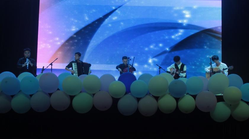 朗诵《书香物电,二十芳华》声音铿锵,娓娓道来令在场师生共情;随后精彩风趣的相声《我的奋斗》引得笑声阵阵活跃着台下气氛;紧接着的是创新节目《物电新闻联播》,多种时下热梗串联,推动着现场的欢乐高潮风拂过,静谧畔,器乐合奏《贝加尔湖畔》余音绕梁,令人回味。