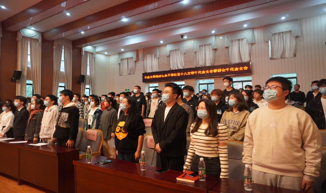 根据会议议程,物理与电子学院第十七届学生会主席萧鸿猷、第十七届研究生会主席符鹏磊分别作工作汇报,全体代表听取并审议工作报告,选举产生了第十八届学生会主席团成员与研究生会主席团成员。第十八届学生会主席陈炫晔致闭幕词,全体与会人员合影留念,本次大会圆满闭幕。