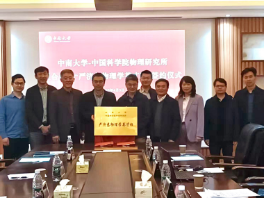 中国科学院物理研究所副所长胡江平研究员、禹日成研究员、王志俊研究员、研究生部成蒙副主任,以及中南大学党委常委、副校长何军教授、物理学院班子成员、教师代表等参加签约揭牌仪式。仪式由中南大学物理学院党委书记谢群主持。