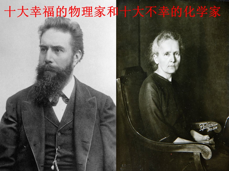 幸福原因:伦琴一生没有太多坎坷,他1865年迁居瑞士苏黎世,伦琴进入苏黎世联邦工业大学机械工程系,1868年毕业。1869年获苏黎世大学博士学位,并担任了物理学教授A.孔脱的助手;1870年随同孔脱返回德国,1871年随他到维尔茨堡大学和年1872又随他到斯特拉斯堡大学工作。1894年任维尔茨堡大学校长,1900年任慕尼黑大学物理学教授和物理研究所主任。