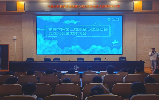 11月21日,物理学院第二届朋辈心理互助会成立大会暨破冰大会在学院116报告厅顺利召开。心助会指导老师萧鸿猷、心助会全体学生干部、2024级年级长和2024级各班心理委员出席本次会议,活动由心助会办公室部长李步一主持。