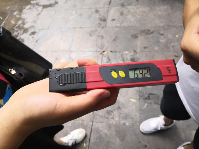 我们发现这个问题之后,怀着保护环境以及对自己家乡的热爱,发起了这次社会实践行动。在前期准备工作之后,我们去了济南市比较有名的两大泉水景点:黑虎泉和趵突泉。我们先使用水质笔和pH计测出水质结果,和几年前的资料进行对比后,我们发现水质确实有所下降。随后我们向景点周围的游客进行了问卷调查,在问卷过程中,我们发现本地游客大多喝过泉水并比较关注水质情况,但是自身的纠察意识还是比较欠缺;对于外地游客来说,泉水是济南的名片,泉水水质在他们心目也是对济南评分的重要标准。