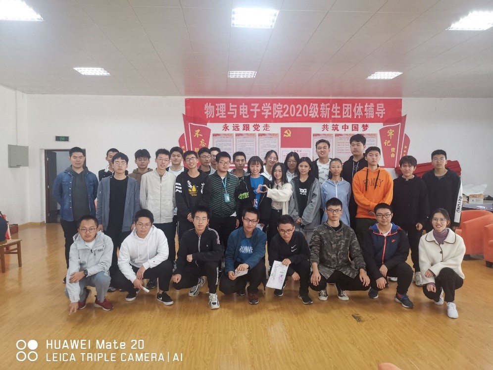 为了帮助20级新生尽快适应大学生活,融入新的班级集体,建立基本的人际交往关系。物理与电子学院2020级8个班级分别于11月5日至11月16日期间在物理楼346开展适应性团体心理辅导活动。本次活动由20级辅导员兼心理专干龙欣琪老师及班导师肖佳珣老师主持,各班同学参加。