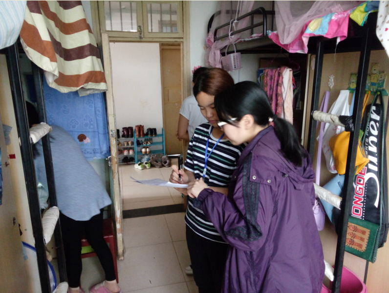 本次检查旨在督促各寝室保持寝室的卫生环境,营造良好的寝室氛围。评委们工作负责,对寝室床铺、门窗、地面、卫生间等地方进行了仔细的检查。和第一次相比,评委们更加注重公共区域的卫生,如:认真进行卫生间、阳台环境的评审工作。查寝结束后评委们严格按照评分手册给寝室打分,并记录在评分表上。
