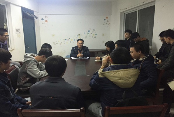 三月十六日晚,物电院14级副班长及学习委员新学期第一次例会在四栋活动室召开。14级辅导员钟旭东,年级长张海霞、刘华渊,全体副班长和学习委员参加了本次会议。辅导员钟旭东主持本次会议。九时十分会议正式开始,辅导员钟旭东老师开门见山,就本次会议的学习和安全两个主题向与会同学做了简单说明。他从上学期期末考试谈起,就学期末各班考试成绩和挂科情况做了简单总结。钟老师语重心长地说道:“学习问题是关乎到同学们切身利益的问题,你们将来都要面临就业问题,现在的知识储备就是以后安生立命的根本,整日沉迷于游戏,因懒散和放纵消耗着的无疑是自己人生中最美好的时光,也意味着毕业即失业的未来。”