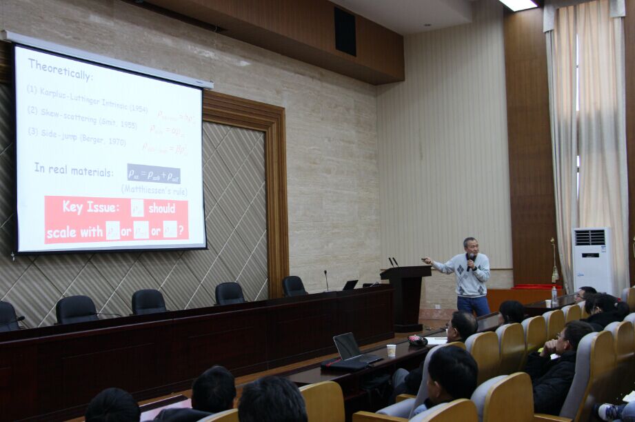 为了让物电院师生了解科研的新动态,解决广大师生关注的热点问题,12月21日下午15:00,中南大学名师名家学术论坛物理院专场在物理楼116多功能报告厅成功举行,本次论坛由复旦大学金晓峰教授主讲。论坛由郭光华教授主持,众多物电院师生参与了此次讲座。讲座伊始,主持人郭光华教授作开场致辞,他介绍了金晓峰教授在凝聚态物理等科研方面的主要成就,以及在教学领域的突出贡献。金晓峰教授从“霍尔效应”谈起,引出了金教授团队的研究课题——反常霍尔效应的机理,并向同学们介绍了团队多年的工作成果。其后,金教授介绍了自旋电子学与微电子的差别,并结合实例,深入浅出地讲解了该原理的应用。金教授生动的演讲启迪同学们的思维,令大家连连惊叹。