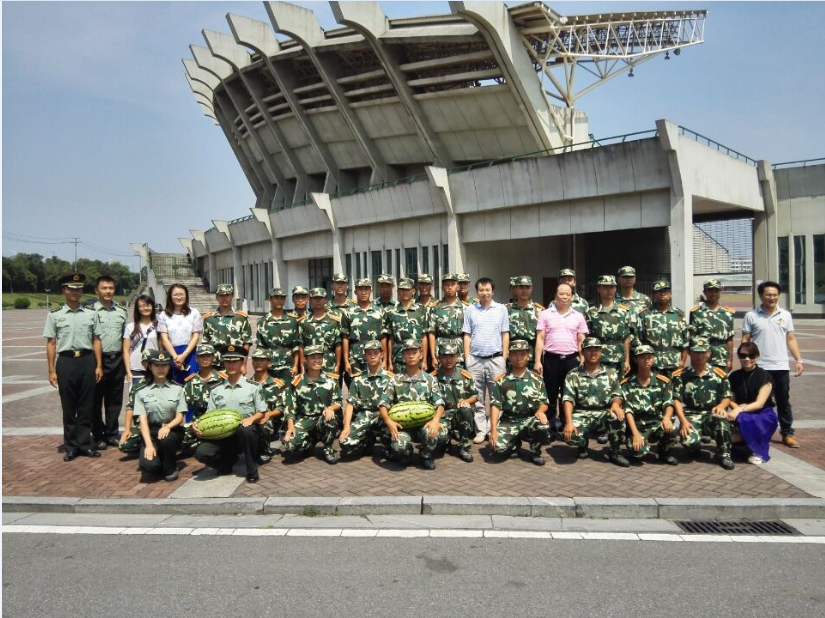 9月17日上午,物理与电子学院党委书记许宏武、院长何军、党委副书记谢群及全体辅导员来到训练场看望了正在军训的15级新生,为他们送上西瓜等慰问品。烈日炎炎,挡不住新生们军训的热情。物理与电子学院3营14连的同学们以及国防生们吃苦耐劳的精神和一丝不苟的训练,赢得了领导们的一致肯定。许宏武书记鼓励15级新生要坚持不懈,锻炼顽强毅力,保持昂扬斗志,不但要在军训中超越自我,还要将这种力量用在学习上,为我校争光,为国家的腾飞做出贡献。同时,许书记对国防生们也表达学院殷切期望,希望每个国防生都能将国家紧系于心,居安思危,为国防事业的发展献出一份力。随后,领导老师与教官们进行了交流,了解新生的训练进度以及身体状况,同时送上西瓜等慰问品,并与大家合影留念。