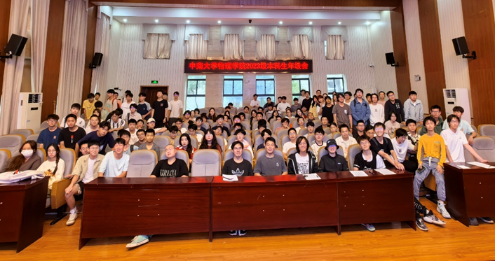 会后,萧鸿猷和2023级全体学生合影留念,光电专业新班级前往物理楼各教室投票选举新班级的班委。