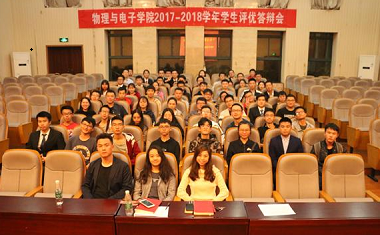 11月4日晚7点,物理与电子学院2017-2018学年学生评优答辩在物理楼116顺利召开。此次答辩会的主要项目有先进班集体、优秀学生干部标兵和优秀学生标兵答辩,分为风采展示和现场提问两个环节。全体辅导员和各年级学...