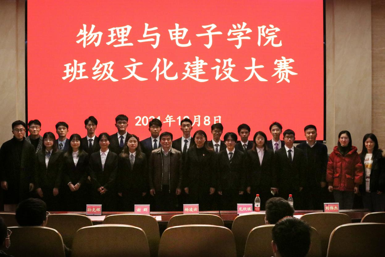 为促进班级文化建设,营造良好的班级氛围,增强学生的团队精神和班级凝聚力,12月8日下午,物理与电子学院班级文化建设大赛在物理楼116报告厅举行。院长孙克辉、党委副书记谢群参加活动,各年级辅导员与来自各班的3...