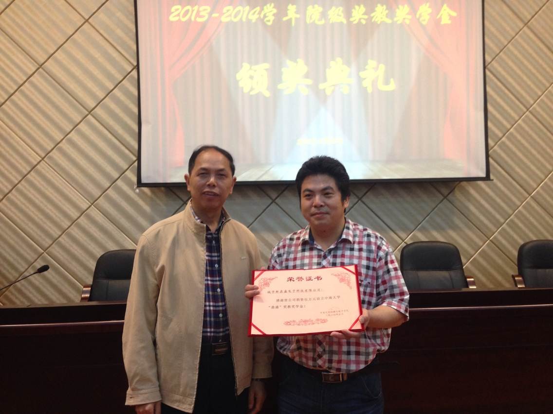 2014年5月10日上午,物理与电子学院2013-2014学年院级奖教学金颁奖典礼在新校区物理楼学术报告厅举行。湖南城步新鼎盛电子科技有限公司总经理周剑飞、物理与电子学院杨兵初院长为获得“鼎盛”奖学金与“联民”奖...