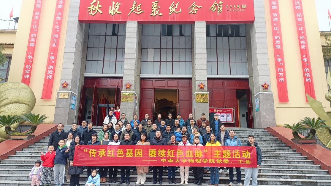 为传承红色基因,赓续红色血脉,2024年1月19日,物理学院组织全体教职员工赴江西铜鼓秋收起义纪念地开展工会活动。在毛泽东化险地——铜鼓县月形湾,大家怀着无比崇敬的心情,先后参观了毛泽东旧居吴家祠、毛泽东...